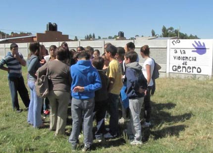 En horas de la mañana del miércoles, un grupo de alumnos de 1º año de la Escuela Secundaria Nº 1 coordinados por el profesor Miguel Bertoni y la docente Silvina Gordillo, efectuaron una intervención artística abordando la temática de violencia de género.