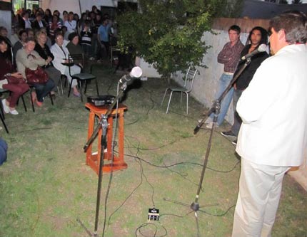 El acto, desarrollado en el patio del mencionado lugar, comenzó con la presencia del profesor de guitarra criolla, Nicolás Altieri interpretando una serie de canciones nacionales. Acto seguido, la directora de Educación y Cultura Beatriz Souto agradeció a todos los que trabajaron para acondicionar el Espacio, como así también felicitó a los alumnos de los talleres que allí expusieron “verdaderas obras de arte”.
