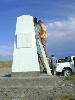 Sitio geográficamente equidistante entre los faro de Claromecó y Quequén;   fue construido por Don José Travaglia por encargo de la Marina de Guerra.  Inaugurado  en enero de 1971 por el jefe de Hidrografía Naval y el entonces Intendente  Municipal Ing. Horacio Sieber, e indicaba el lugar donde se emplazaría el Faro Guaraní.