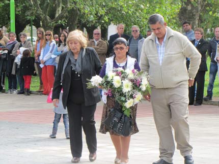 Finalmente, el ex combatiente Walter Gómez junto a Herminia Ferreyra y Mirna Gómez, madres de ex combatientes sancayetanenses, colocaron una ofrenda floral al pie del monolito para recordar a los caídos y a todos aquellos jóvenes que se movilizaron para defender a su patria.