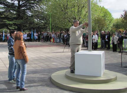 “a mí los dieciocho me pasaron de largo, estrenando opiniones, intenciones y cantos, a esa edad, como todos, con el puño cerrado, en las puertas abiertas el futuro esperado. Al tuyo, bruscamente te lo desamarraron y te hiciste a la niebla en el mar del espanto, encallaron tus sueños Daniel, en la turba y el barro, fue la muerte bandera y la vida un milagro…” Con la lectura de este fragmento de “A Daniel..un chico de la guerra” de Alberto Cortez, se dio inicio al Acto en Conmemoración a los Veteranos y Caídos en la Guerra de Malvinas, llevado a cabo en Plaza América.