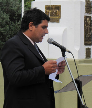 Seguidamente, en su discurso, el Concejal del Frente para la Victoria Miguel Carrizo señaló que “Hoy se cumplen 32 años del desembarco de las tropas argentinas en nuestras Islas Malvinas, ocupadas ilegalmente por Inglaterra desde el 2 de enero de 1833 luego de expulsar a los argentinos que entonces se encontraban defendiendo nuestra soberanía. Desde entonces, nuestro país no ha dejado de reclamar ante Gran Bretaña y diversos organismos internacionales como la ONU y la OEA la devolución inmediata de esta parte indivisible de nuestro territorio”.