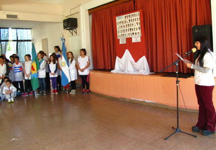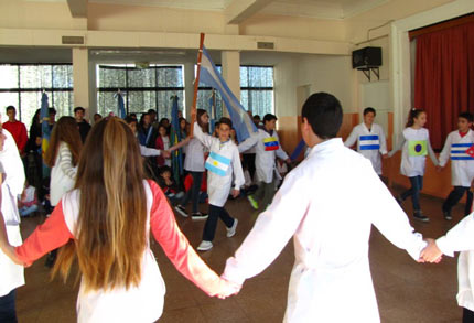 Por último, alumnos de la escuela realizaron una representación conformando la bandera de la diversidad cultural para anunciar luego el significado de sus colores.