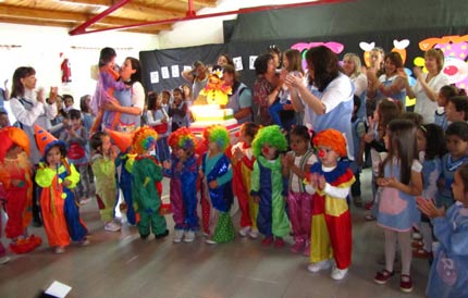 Finalmente, los presentes cantaron el feliz cumpleaños al tiempo que los payasitos apagaban las 30 velitas. El recorrido por las diferentes salitas y la degustación de la torta fue el corolario de una emotiva celebración.