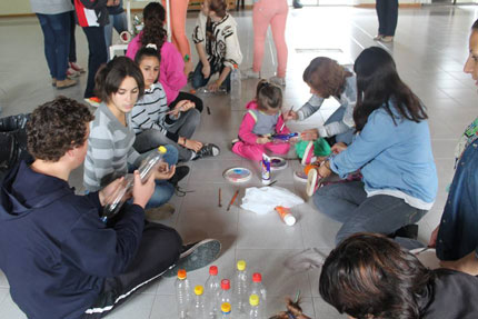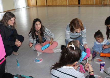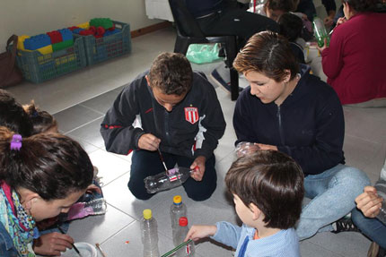 La actividad consistió en construir, junto a los nenes y papás, juegos con material reutilizable.