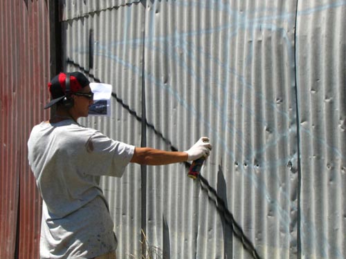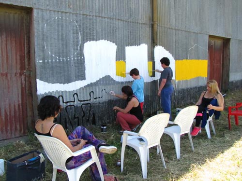 La propuesta consiste en la creación de una obra colectiva a partir de espacios individuales. Cada artista tendrá un espacio de trabajo de 3mts. de alto por 7 mts. de largo. Los murales allí pintados en los galpones, los cuales constituyen una “especie de pared o cortina” entre la ciudad y uno de los barrios periféricos como lo es Villa Trabe, continuarán con las acciones tendientes a la integración del propio barrio.