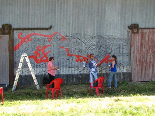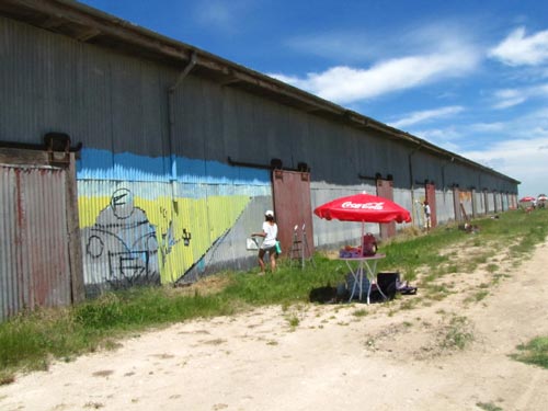 En tanto, hoy martes, los distintos artistas comenzaron a plasmar en los galpones del Frente de Vías los murales cuya temática giran en torno al ferrocarril: impacto social, cultural y económico, tanto de su llegada como del cierre de ramales y estaciones; surgimiento de poblados en torno a las estaciones ferroviarias; movimientos de pasajeros y carga y demás.