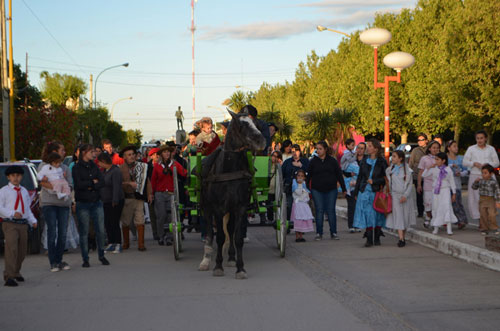 La concentración se realizó en la esquina de Avenida Independencia y calle 25 de mayo, donde 85 nenas y nenes, ataviados con “pilchas gauchas” fueron agasajados con caramelos, donados por el vecino Rubén Bardas, chupetines y tortas fritas. Dejaron su nombre para el sorteo de noviembre y luego de pasear con un carruaje que prestó Juan Carlos Castellano y posar junto a los populares “Pancho” y “Pachino”, se produjo la desconcentración entre aplausos y sonrisas compartidas.