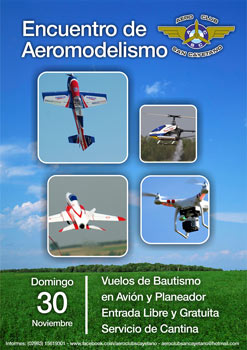 La Comisión Directiva del Aero Club San Cayetano invita a toda la comunidad al Encuentro de Aeromodelismo que se llevará a cabo el domingo 30 de noviembre en sus instalaciones.