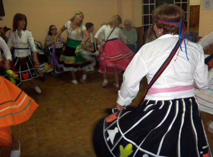 A continuación, un grupo de mujeres aficionadas a la danza folklórica con vestuario alegre y colorido, interpretaron una Chaya Riojana del Chaqueño Palavecino y la chacarera del Rancho del renombrado grupo Los Nocheros.