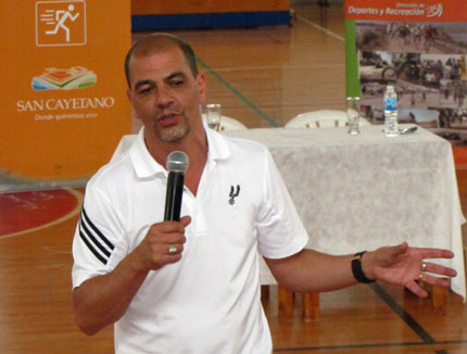 El entrenador más ganador de la historia de la Liga Nacional y medalla de bronce en los Juegos Olímpicos de Beijing 2008 con la Selección Argentina, estuvo en San Cayetano el viernes pasado, oportunidad en que brindó una charla motivacional en el Polideportivo municipal.