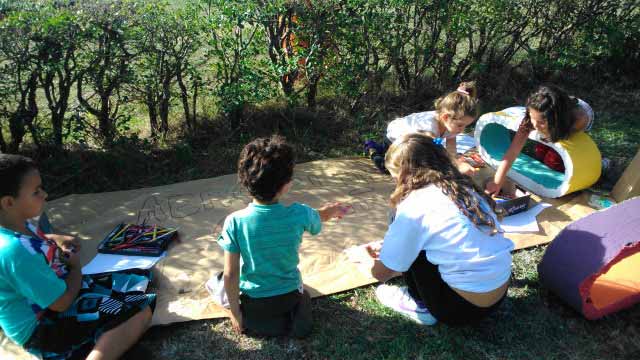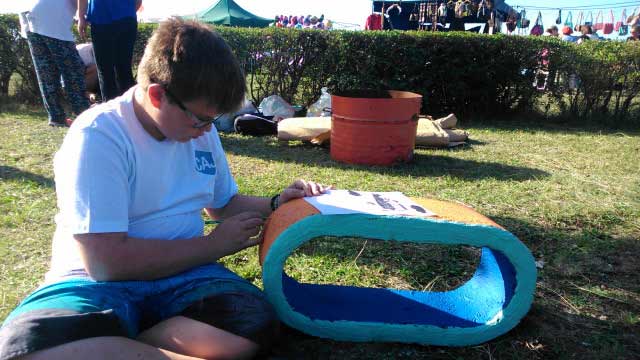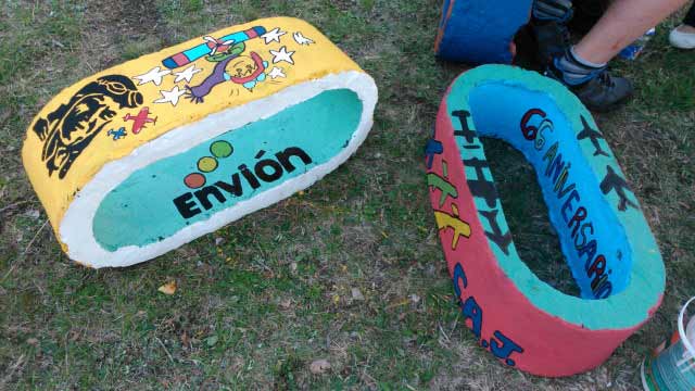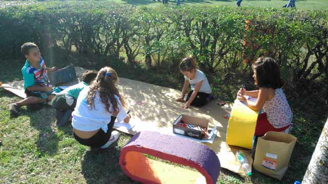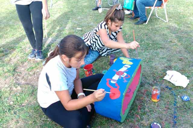 La misma consistió en dibujar y pintar vínculos de cemento, los cuales quedarán en el predio del aeroclub para ser usados como bancos.