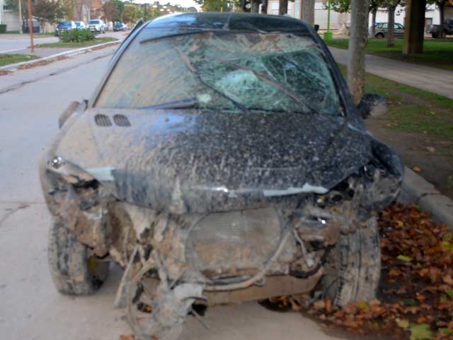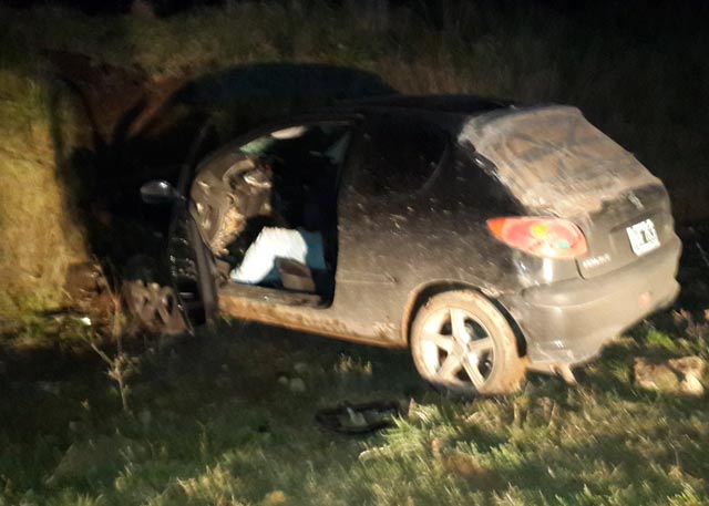 A las 06.15 de la mañana del día domingo 3 de mayo se produjo un accidente en el que un automóvil chocó contra un montículo de tierra en un camino vecinal. El vehículo, un Peugeot modelo 206 color negro, dominio HBX 763, conducido por Cristian Martín Ramos, de 31 años, domiciliado en en la ciudad de Orense y acompañado por Juan Pablo Montenegro, también de Orense, se desplazaba por ruta provincial n° 75 con dirección a Energía.
