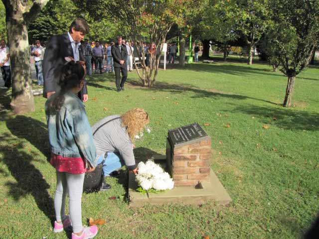 Finalizando el acto, Silvana Suárez junto al Intendente Gargaglione colocaron una ofrenda floral frente al monolito que recuerda a quien fue víctima de la dictadura militar.