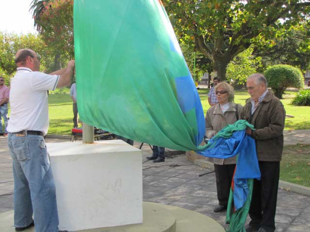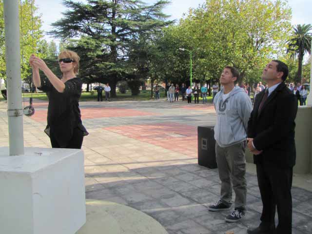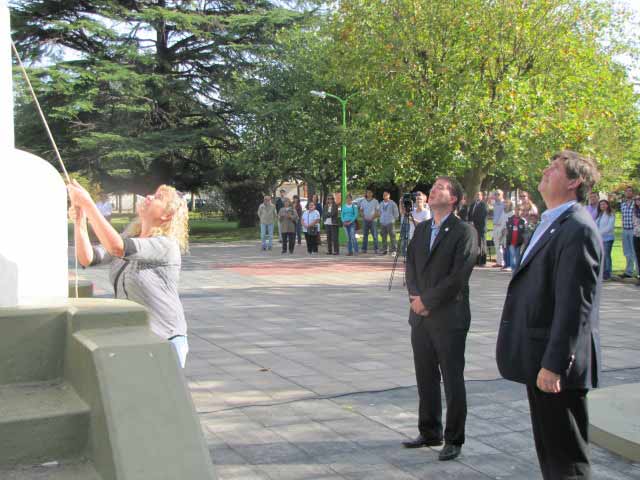 mientras el Distrital lo izaron la Presidente del Consejo Escolar Rosana González, el Juez de Paz Letrado, Sergio Aguillón y el Presidente del Consejo de Administración de la Cooperativa Eléctrica, David Zubía.
