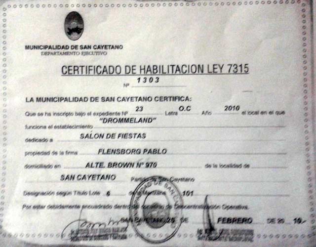 Quiero dejar en claro que «DROMMELAND» está desde su comienzo habilitadi como SALON DE FIESTAS, y nunca figuro como «PELOTERO INFANTIL».