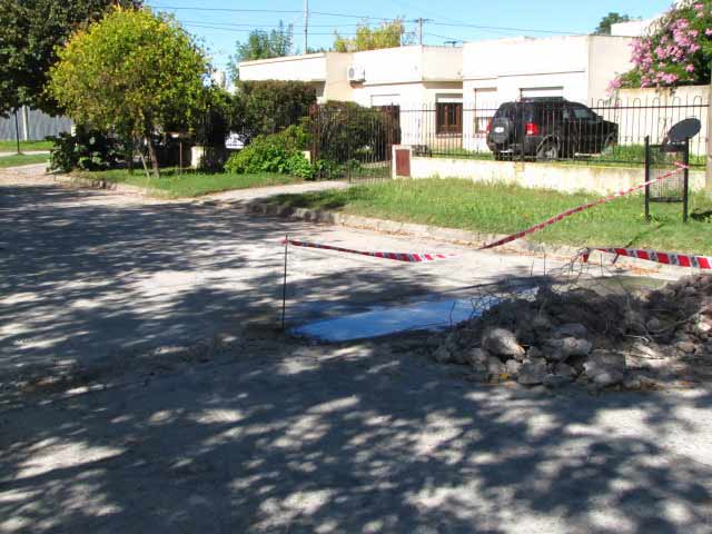 Tras realizar los cortes necesarios y extraer parte del pavimento existente que se encontraba deteriorado, como así también aquellas raíces que provocaron las roturas del mismo, personal de la dirección de Obras Públicas rellena dichos sectores con material elaborado en el planta de hormigón municipal instalada en el Sector Industrial Planificado.