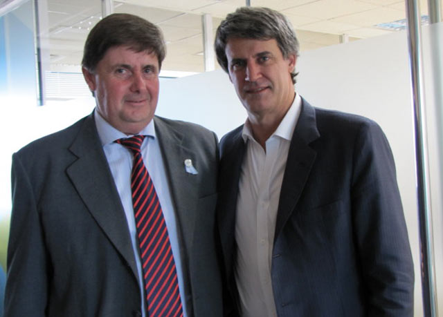Coincidentemente con la culminación de la reunión con Raúl Ripa, el Ministro de Hacienda y Finanzas Públicas de la Nación, Alfonso Prat-Gay salía del despacho del Ministro de Comunicaciones, Oscar Aguad por lo que el intendente Gargaglione tuvo la oportunidad de saludarlo. Tras la presentación formal y la expresión de deseo para que la gestión del Ministro sea exitosa, ambos funcionarios intercambiaron algunas apreciaciones acerca de la actual situación macroeconómica y las medidas que se adoptaron en estos meses de gobierno.