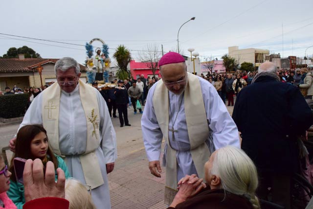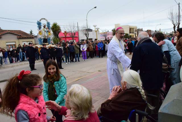Entre rezos, oraciones y cánticos, los fieles recorrieron la Avenida Apezteguía y su continuación Independencia, deteniéndose unos instantes en el Hospital Municipal, y en el Geriátrico donde los residentes recibieron el saludo y bendición del arzobispo y del cura Párroco Pablo Deiro.
