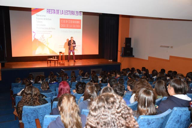 Durante la primera jornada de la Fiesta de la Lectura el escritor Juan Guinot presentó “El universo de Star Wars en la novela La Guerra del Gallo”, además narró las lecturas infantiles “Chacharramendi” (1º premio Literatura infantil 2015), y “Dos al vuelo”.