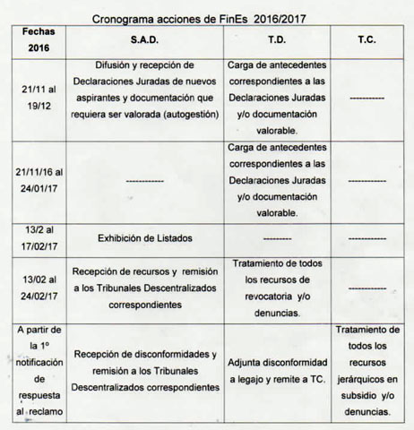 Secretaría de Asuntos Docentes Distrital de San Cayetano informa cronograma de inscripción para el listado 3 FinEs 2016/2017.