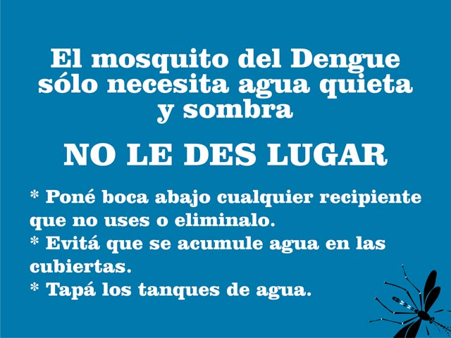 Como no existen vacunas que prevengan el dengue ni medicamentos que lo curen la medida más importante de prevención es la eliminación de todos los criaderos de mosquitos, es decir, de todos los recipientes que contienen agua tanto en el interior de las casas como en sus alrededores.