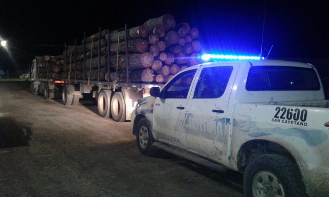 Se verificó que transportaba 27.500 Kg. de rollizos de pino, careciendo Guía Forestal, por lo que se labró infracción al Código Rural con intervención del Ministerio de Agroindustria.