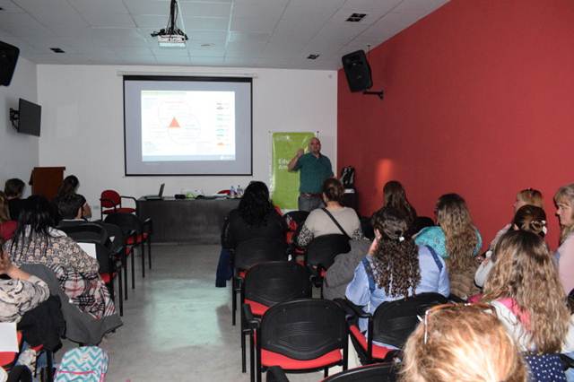 En el Espacio Cultural Municipal se realizó la segunda jornada de la capacitación sobre Generación 3R y eficiencia energética destinada a docentes de todos los niveles del distrito. De esta manera finalizó la parte teórica de la capacitación. Resta que los trabajadores de la educación que hayan asistido a ambas jornadas rindan un examen final y presenten un trabajo práctico para acceder al certificado y al puntaje, que será de 0,44.