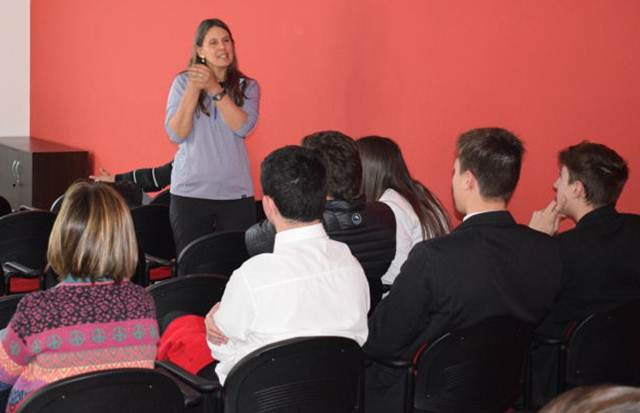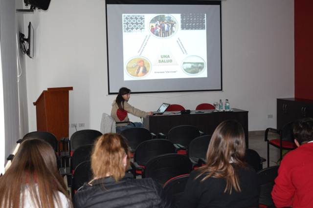 En la oportunidad, Andrea Caselli, perteneciente al Área de Recursos Naturales y Sustentabilidad del Dpto. de Ciencias Biológicas, Facultad de Ciencias Veterinarias brindó conceptos fundamentales de la carrera y el trabajo de campo que se realiza, todo con el soporte de un power point.