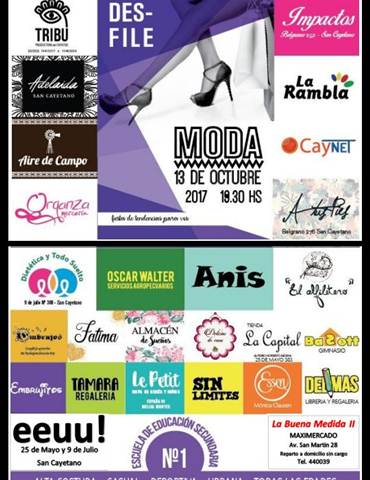 La Escuela de Educación Secundaria N° 1 Manuel Belgrano, (“Escuela Media”) organiza éste viernes 13 de octubre un DESFILE de Modas. El encuentro será a las 19.30 en la escuela. (P.N.Carrera 792). La entrada de $50 será a beneficio de la cooperadora.