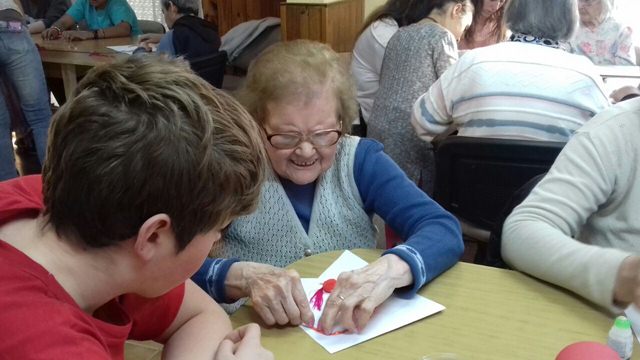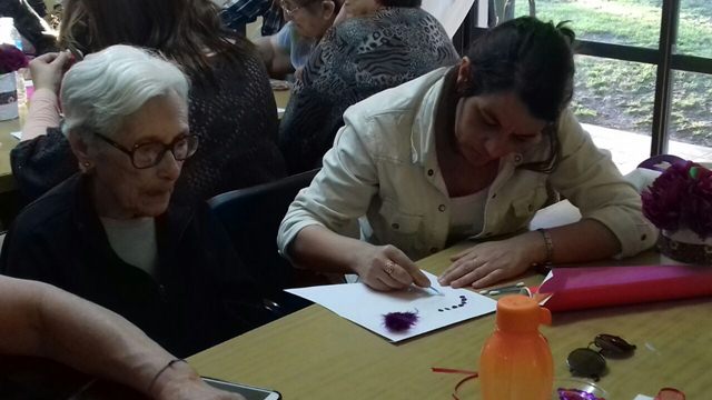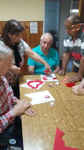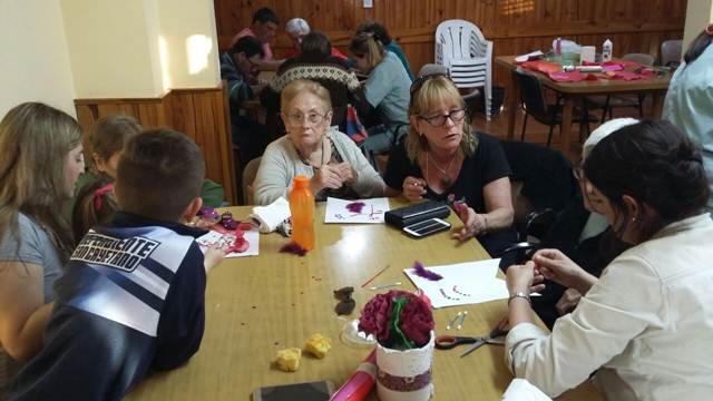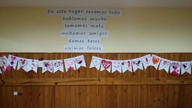 El inicio de la tarde estuvo dado por una actividad organizada por la directora de la institución, María José Aguirre. La misma consistía en ornamentar, cada residente junto a su familia, un corazón. Luego todas las figuras fueron colgadas en forma de banderín.