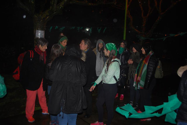 Lo hicieron colocando banderines, cintas, pañuelos de color verde con el lema: Anticonceptivos para prevenir, Aborto legal para no morir, dejando en claro que están discutiendo legalidad o clandestinidad, no aborto.