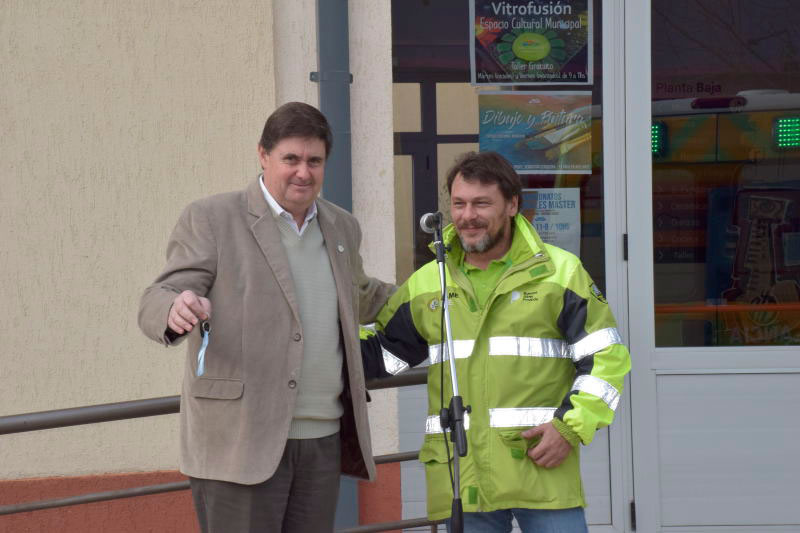 En el acceso al Espacio Cultural, el intendente Miguel Gargaglione, junto al director Provincial de Emergencias Federico Villagrán, oficializaron la llegada del servicio de Emergencias provincial SAME a San Cayetano.