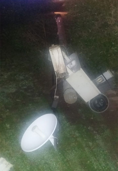 El pasado domingo en horas de madrugada, personal de la Estación de Policía observa en Av. San Martin y Av. De la Canal el poste de cemento el cual sostiene las cámaras de vigilancia pertenecientes al municipio local, en el piso. El mismo habría sido impactado por un vehículo, produciendo fractura en su base y que cayera hacia el frente de vías. Realizada compulsa en el sistema de monitoreo se observa pick up marca Chevrolet, no pudiendo determinar más datos. Se solicita presencia de personal de Cooperativa Eléctrica de San Cayetano, a los fines de asegurar la zona, como así también encargado de mantenimiento de Cámaras de Vigilancia, a los fines de retirar las mismas. Se visualiza demás cámaras, a fines dar con el autor del hecho.