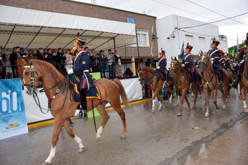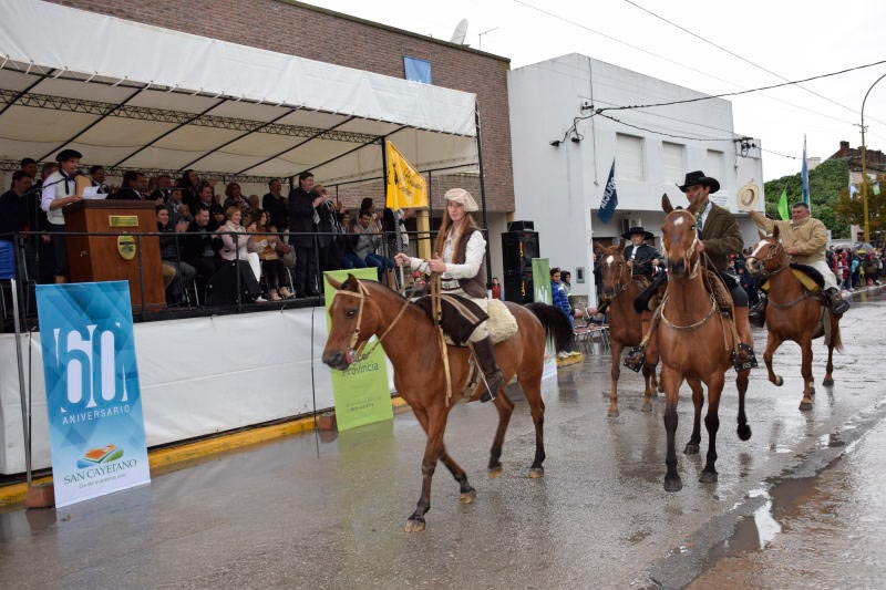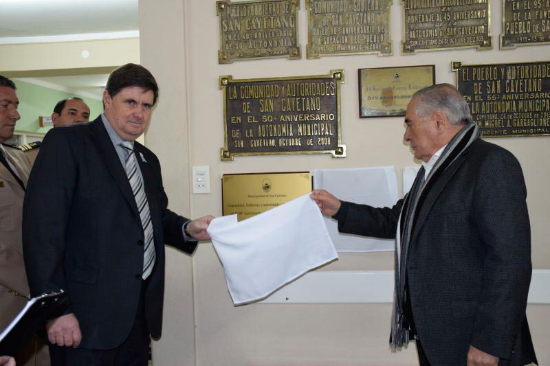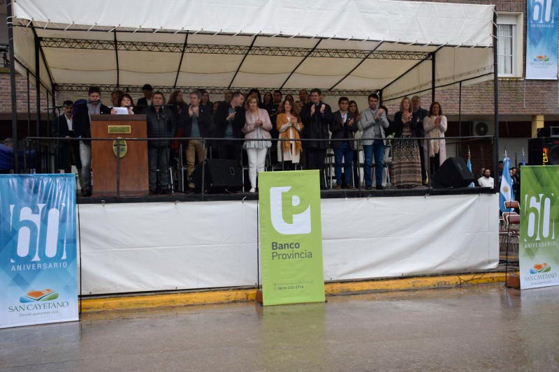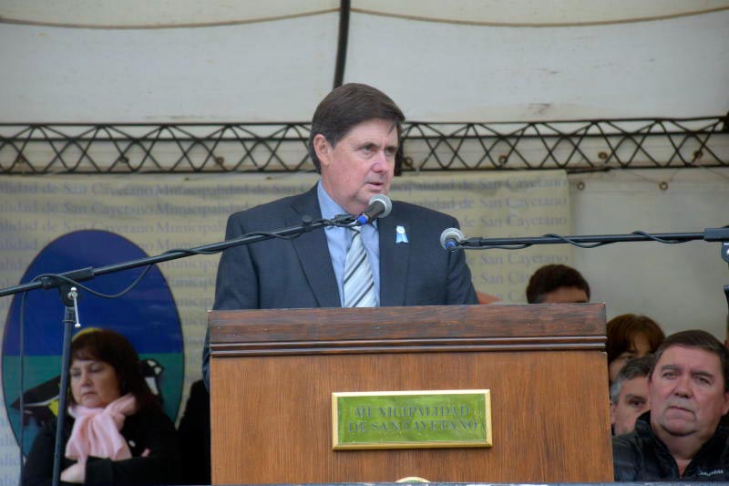Tras la entonación del himno nacional, el Intendente Gargaglione inició su discurso repasando la fundación del pueblo de San Cayetano, para luego destacar que con el “transcurrir de los años, nuestros vecinos en forma individual o a través de las primeras instituciones, teniendo como máximo referente a la asociación de fomento local, comienzan a soñar con lograr la autonomía. Fueron décadas y a pesar de las estadísticas que demostraban una gran pujanza para la época, los proyectos legislativos se veían frustrados, aunque debemos resaltar el ejemplo de unidad en busca de un objetivo común”.