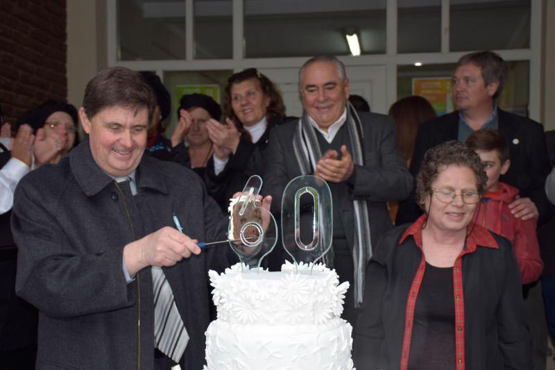 El acto oficial por los 60 años de la Autonomía Municipal culminó con el tradicional corte de torta realizado por el propio Intendente y la vecina Rosa Dip, quién hoy también cumple sus 60 años.