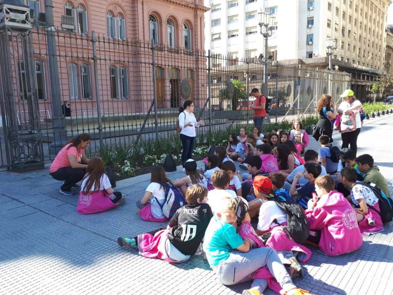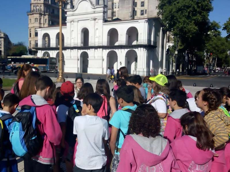 El recorrido consistió, en la visita a la Plaza de Mayo y edificios aledaños históricos. En primer lugar ingresaron a la Catedral, donde visitaron el Mausoleo del General Don José de San Martín, y ya ubicados en la Plaza, la guía informaba e interactuaba con los alumnos, con datos históricos de la Catedral, de la Plaza de Mayo, Congreso, Cabildo, Pirámide de Mayo (inaugurada en el Centenario de la Revolución de Mayo y donde yacen los restos de la Madre de Plaza de Mayo, Azucena Villaflor), Monumento al General Manuel Belgrano (realizado gracias a los ciudadanos que pagaron y exigieron hacerlo), Banco Central de la Nación y Casa Rosada.