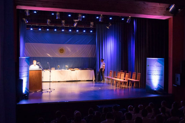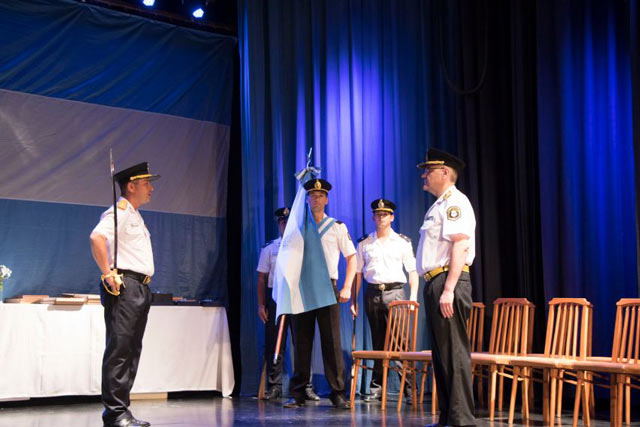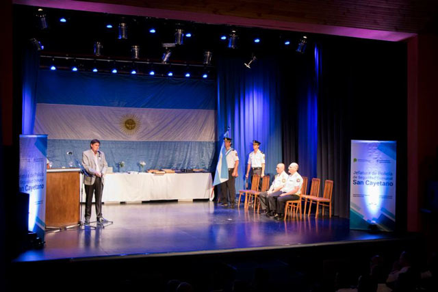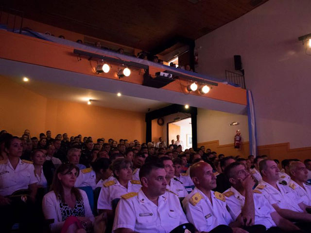 En la sala del Teatro Municipal se congregaron las máximas autoridades de la Jefatura Departamental Necochea, encabezados por el Comisario Mayor Norberto Esteban; funcionarios municipales, el Intendente de Lobería Juan José Fioramonti, y familiares de los agentes.