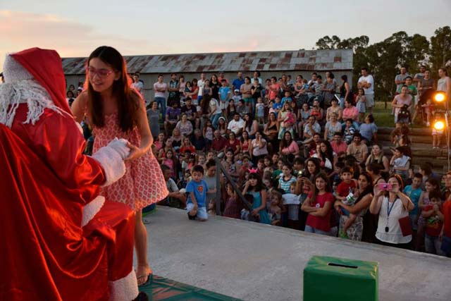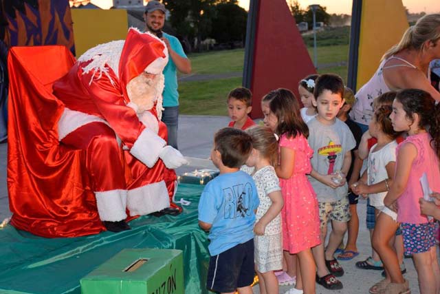 Faltando 24 horas para la Navidad, Papá Noel visitó nuestra ciudad en horas de la tarde. Cientos de niños, acompañados por sus familiares, se acercaron al anfiteatro del Paseo Frente de Vías para saludarlo, fotografiarse y entregarle la carta con sus pedidos.
