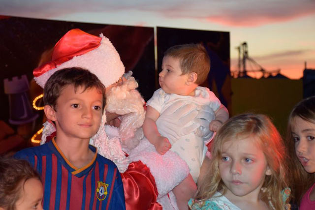 Durante más de dos horas, Papá Noel saludó a cada uno de los niños presentes entregándoles caramelos y deseándoles Felices Fiestas.