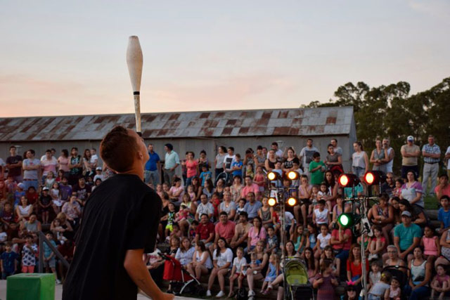Previo a ello, Segundo Somoza, quien tiene a su cargo el taller de malabares de la Dirección de Educación y Cultura, hizo una breve demostración con las clavas.
