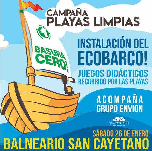De 11 a 13 horas, jóvenes del grupo Envión y personal de la Dirección de Producción le pintarán una bandera al eco-barco que instalarán el próximo jueves frente al parador/restaurant. Además harán una recorrida por la playa, explicando los objetivos de la campaña “playa limpias”.