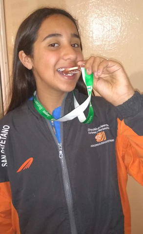 Giovanna Trentini consiguió la segunda medalla para la delegación de San Cayetano que participa de las finales de los Juegos Bonaerenses.
