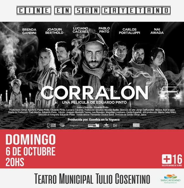 En el marco del ciclo de cine nacional, el próximo domingo a las 20 horas en la sala del teatro “Tulio Cosentino” se proyectará “CORRALÓN”, un film de Eduardo Pinto, apta para mayores de 16 años. Retirar entradas en el Espacio Cultural.