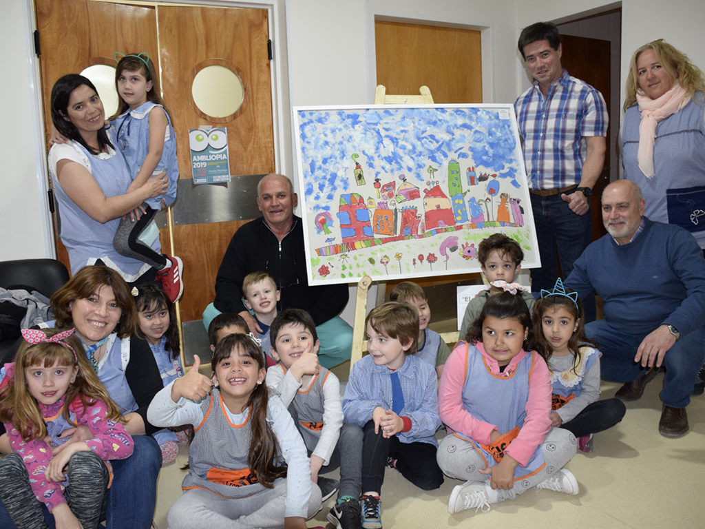 Culminando el proyecto “Descubrimos los colores y las formas”, alumnos de la sala de 4/5 del turno tarde del Jardín de Infantes Nº 901 obsequiaron un cuadro, realizado por ellos mismos, al Hospital Municipal. Recibieron la obra el Secretario de Salud, Pedro Barrientos; el Director de Hospital, Ricardo González y profesionales de la salud.