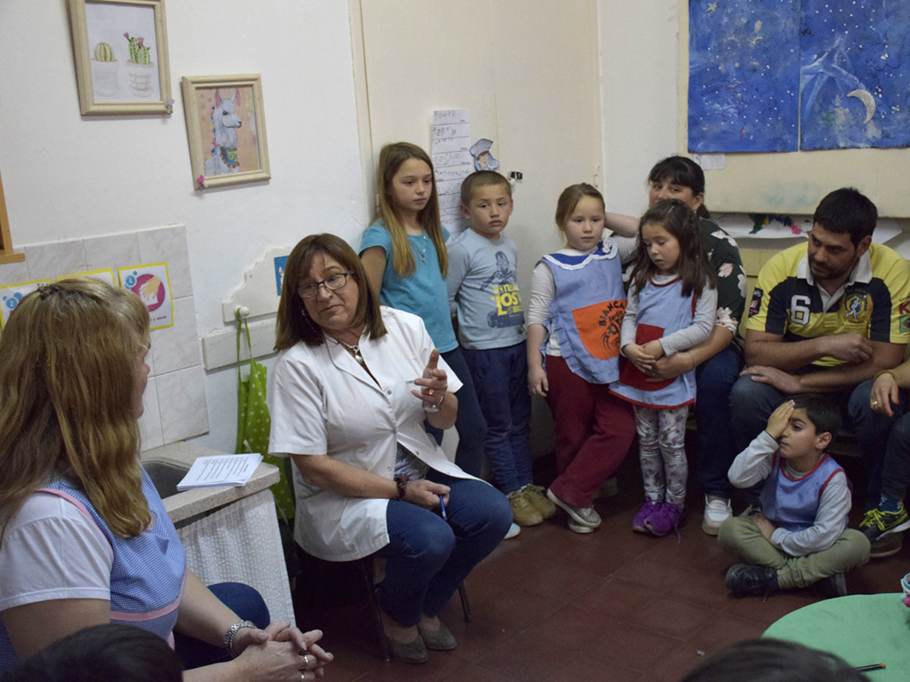 Convocada por autoridades y docentes del Jardín de Infantes Nº 901, la odontóloga Graciela Casares, quien cumple servicio en el Hospital “San Cayetano”, brindó una charla sobre salud bucal destinada a niños y padres de la sala multiedad de 4 y 5 años, turno tarde.