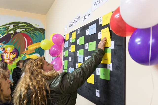 A cada una de las participantes se les entregaba una letra del abecedario y un papel para escribir allí una palabra que empiece con esa letra y que represente la maternidad; esta técnica dio lugar a la participación, escucha y entendimiento.