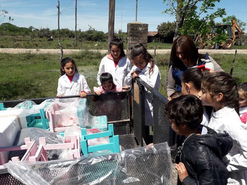 Llevamos todo en un carro para llevar cuatriciclos, cargamos todo como pudimos, dejamos todo en lo de Elma, pasamos el Día de la Madre con ella y al otro día bajamos todo, distribuimos lo de Colonia Pando para poder llevarlo a la escuela que está en otro lugar que se llama Arroyo Pontón, cerca de Corrientes Capital, pero bien metido en el campo, totalmente rural que tiene 33 alumnos entre jardín y escuela primaria.