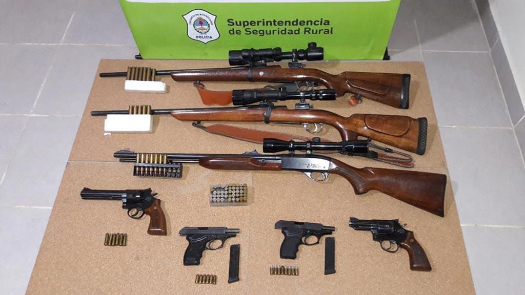 Se halló en el interior del rodado un revolver 357 debajo del asiento, en guantera una pistola calibre 380, asimismo en habitáculo trasero dos fusiles con miras telescópicas infrarrojas y linternas de led, una carabina calibre 22, un Revolver calibre 38 Special y una pistola calibre 380, como así también una gran cantidad de municiones de diversos calibres, elementos estos que fueron secuestrados ante testigo por carecer de documentación habilitante.