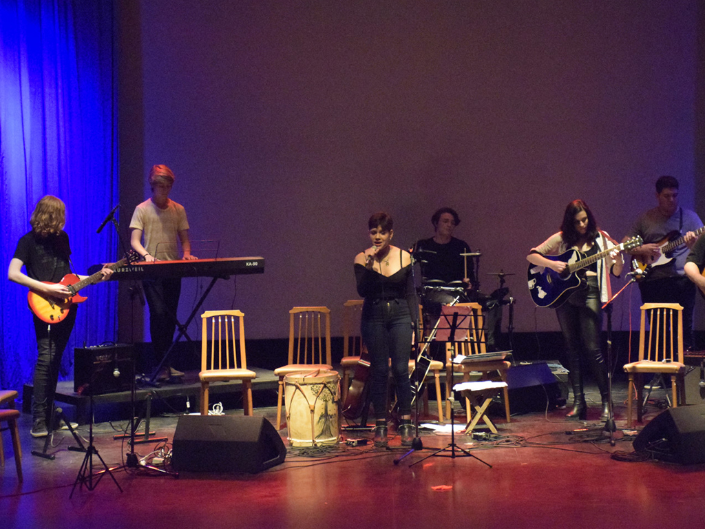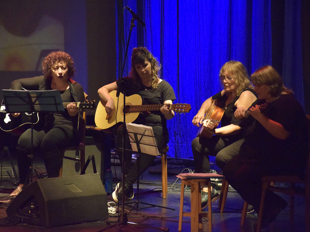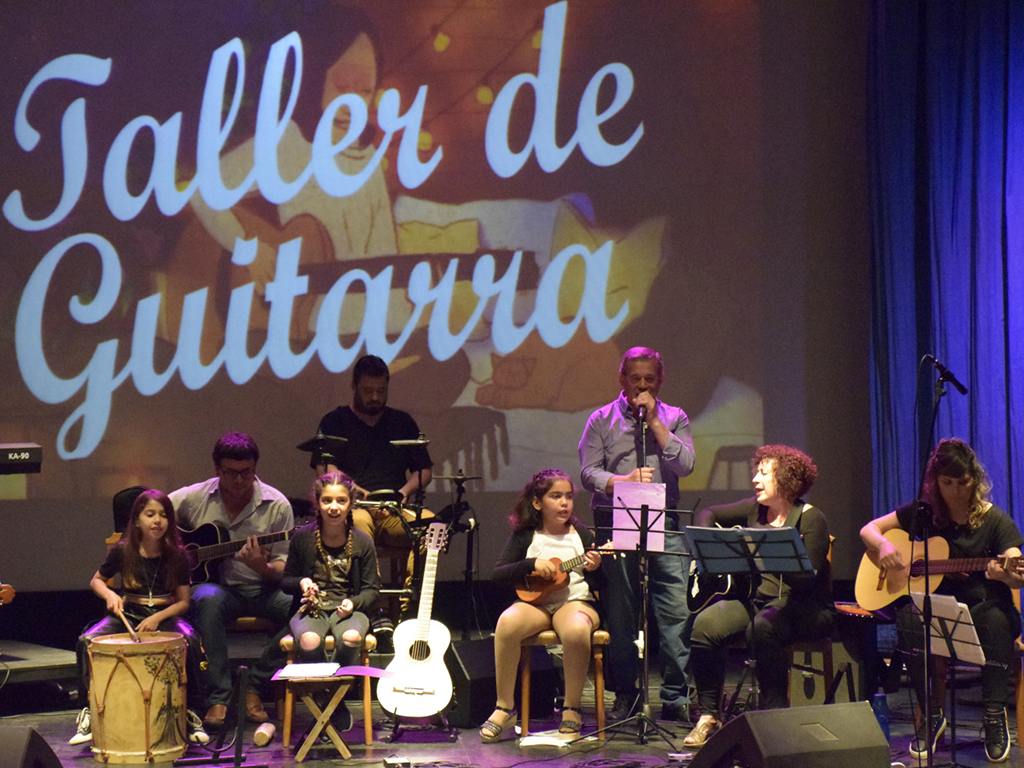 Por su parte, en la muestra del taller de Guitarra que coordina Nicolás Altieri, se trabajó desde la práctica conjunta del instrumento, dejando un poco lo individual de lado para centrarse en grupos de guitarras, y así es como se vio en el escenario.
